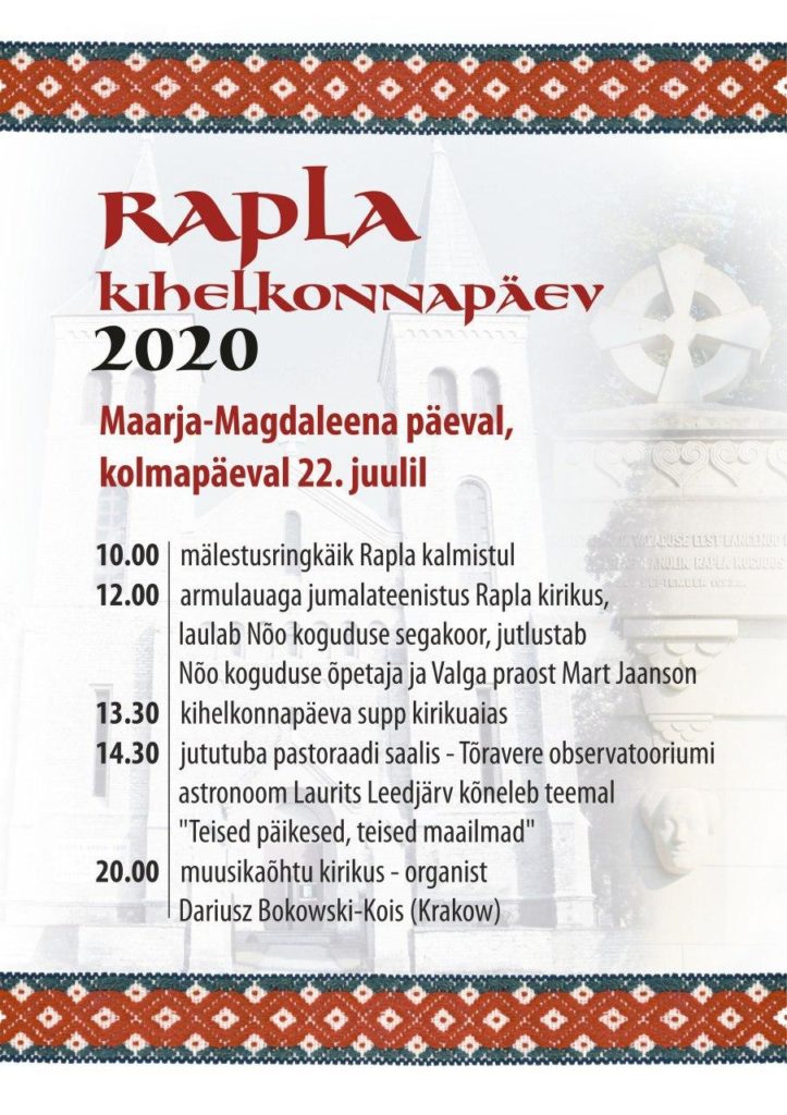 22.juulil 2020 toimub Rapla Kihelkonnapäev.