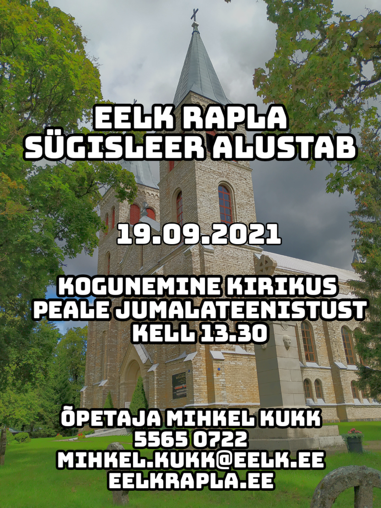 Leeritunnid toimuvad Rapla pastoraadi (valge maja kiriku taga jõe ääres) inglisaalis reeglina pühapäeviti pärast jumalateenistust ehk orienteeruvalt kell 13.30. Olete oodatud kursusega liituma!