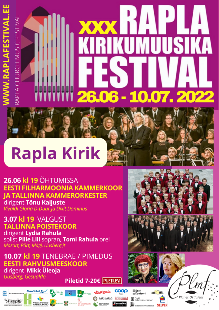 Rapla Kirikumuusika Festival 2022 8. juuni 2022 by Edmund Laugasson 30. Rapla Kirikumuusika Festival toimub 26.06.-10.07.2022. festivali programmfestivali pass