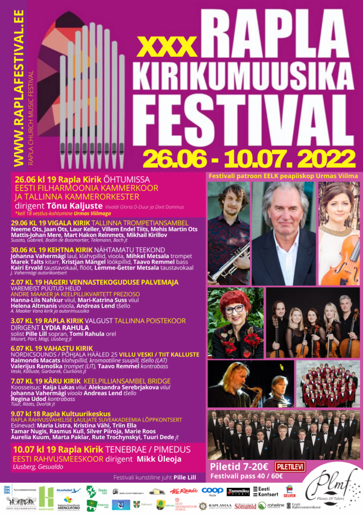 Rapla Kirikumuusika Festival 2022 14. juuni 2022 by Edmund Laugasson 30. Rapla Kirikumuusika Festival toimub 26.06.-10.07.2022