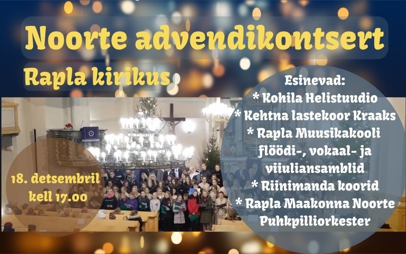 18.detsembril kl 17 toimub noorte advendikontsert Rapla kirikus.