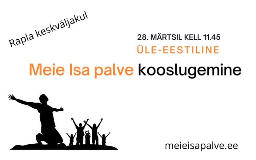 Rapla keskväljakul toimub 28.märtsil 2024 Meie Isa palve kooslugemine. Meie Isa palve eeslugeja on Rapla vallavanem Gert Villard. Lugemine algab kl 11.45. Meie Isa palve tekst kuvatakse suurelt ka keskväljaku ekraanile. Kogunemine alates kl 11.30 ja lõpeb hiljemalt kl 12.00. Kujundusmaterjalid erinevates keeltes leitavad siit.