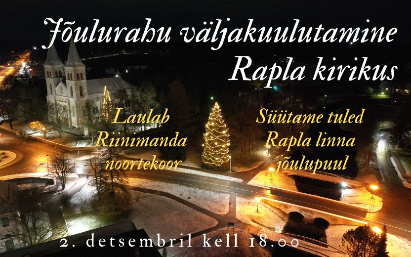 Pärt Uusbergi juhatusel. Järgneb tulede süütamine Rapla linna jõulupuul kirikupargis.