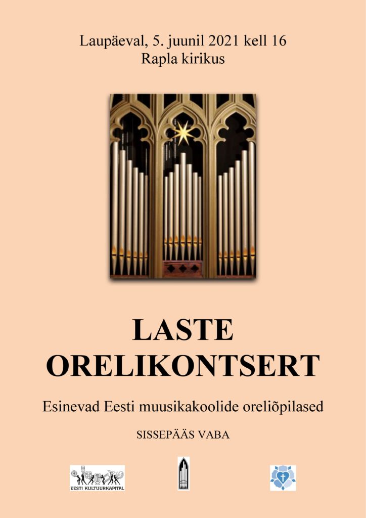 Laste orelikontsert 5. juunil 2021 30. mai 2021 by Kaie Laste orelikontrsert toimub laupäeval, 5.juunil 2021 algusega kl 16 Rapla kirikus. Sissepääs vaba. Laste orelikontsert