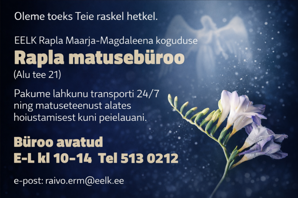 Kõik matuse- ja kalmistuteenused ühest kohast. Kirstumatus. Tuhastamine. Transport 24h