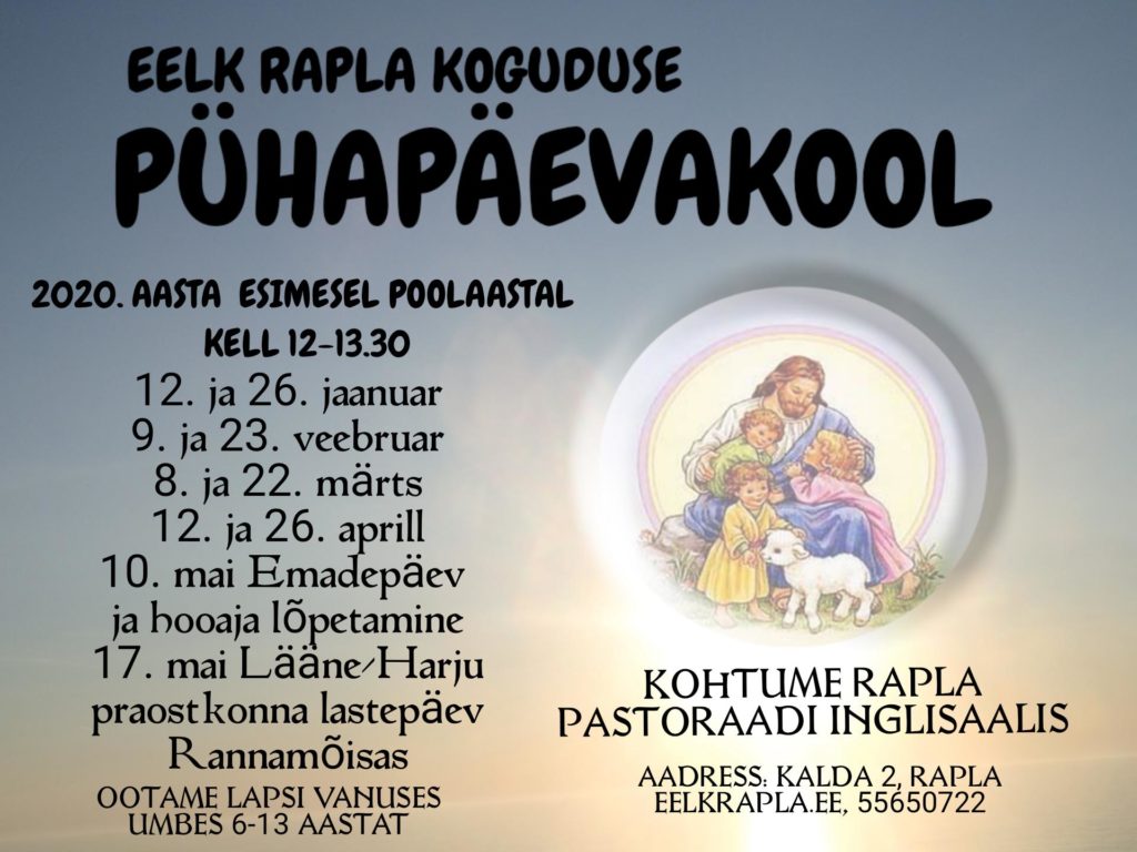 Pühapäevakool on tasuta ning liituda võib igal ajal. Lisainfo karmen punkt kaukver ätt eelkrapla punkt ee või koguduse kantseleist. Olete väga oodatud!