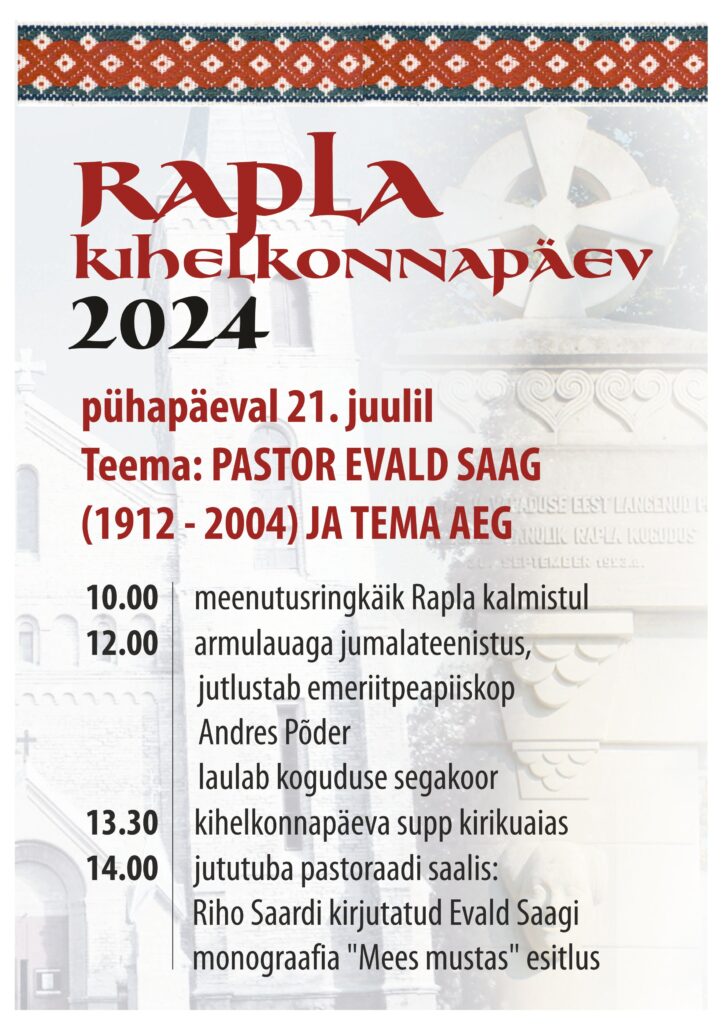 14.00 jututuba pastoraadi saalis: Riho Saardi kirjutatud Evald Saagi monograafia “Mees mustas” esitlus