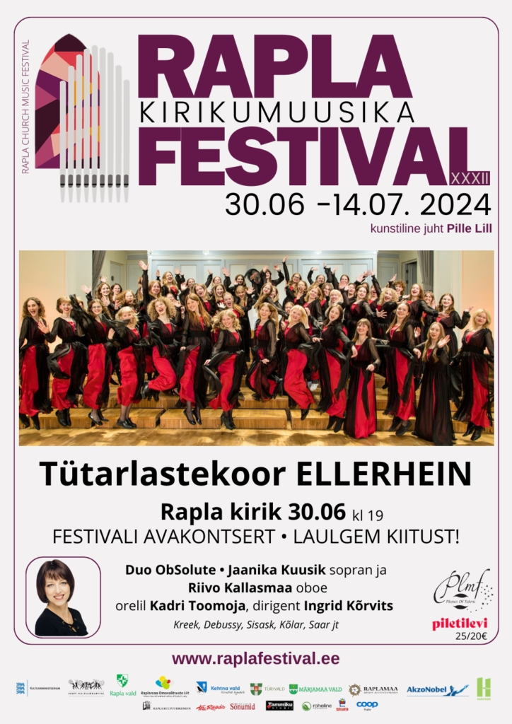 Festival toimub 30.06.-14.07.2024. Festivali avakontsert Rapla kirikus 30.06.2024 kl 19 – https://www.facebook.com/events/404985669199027/