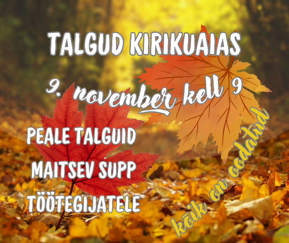 Sügistalgud kiriku aias 7. nov. 2024 by Kaie Kiriku ümbruse suurpuhastus koos talgusupiga 9. novembril algusega kell 9.00 Ootame rohket osavõttu.